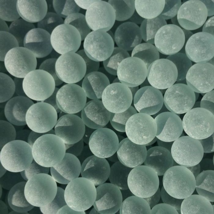 Diese farblose Murmeln sind sandgestrahlt und erhalten dadurch eine matte Oberfläche.