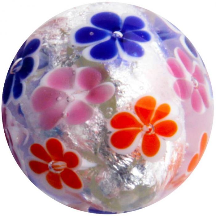 Handgefertigte glasmurmel mit kleinen Blumen in verschiedenen Farben verziert.