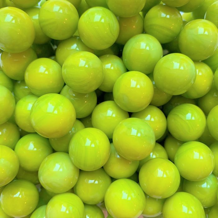 Durchscheinende, gleichmäßig hellgrüne Murmel.