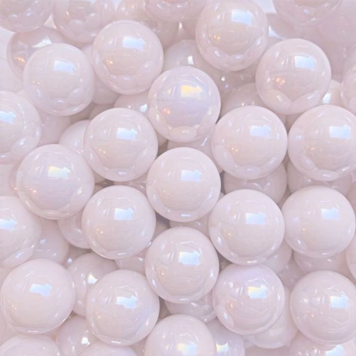 Undurchsichtige, rosarote Murmel mit Perlmuttglanz-Effekt.