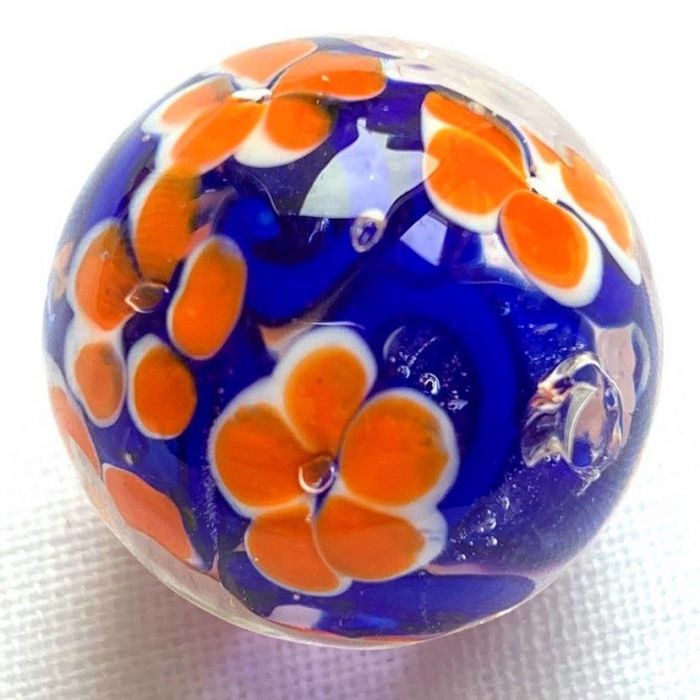 Handgefertigte glasmurmel mit kleinen Blumen verziert.